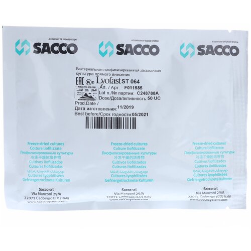 Закваска термофильная Lyofast ST 064 50 UC (на 500 — 10000л, Sacco)
