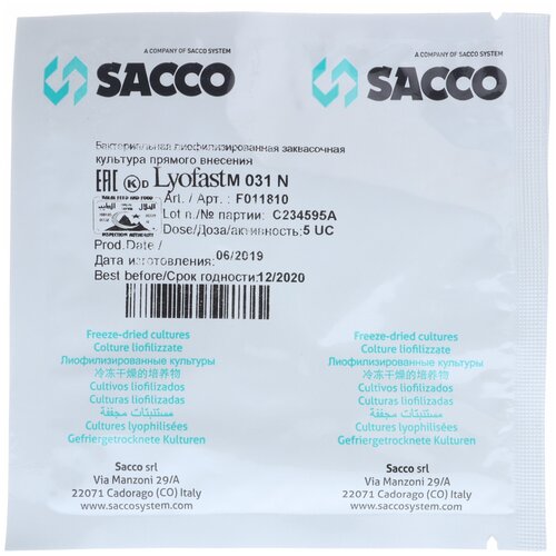 Закваска мезофильная для сыра Lyofast MO 031 10 UC (на 500-2000л, Sacco)
