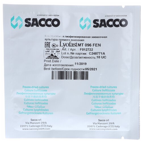 Закваска для сыра Lyofast MT 096 FEN 10UC (на 250-2000 л, Sacco)