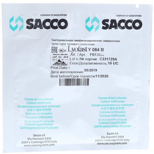 Закваска термофильная Lyofast Y 084 B 10UC (на 250 — 2000л, Sacco)