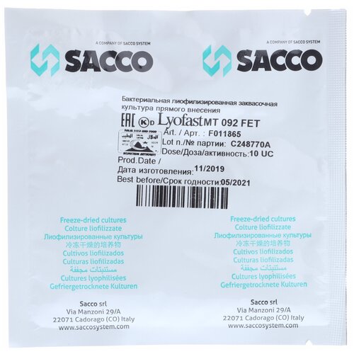 Закваска для сыра Lyofast MT 092 FET 10UC (на 300 — 1250л, Sacco)