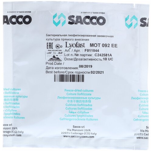 Закваска для сыра Lyofast MOT 092 10UC (на 500-1000л, Sacco)