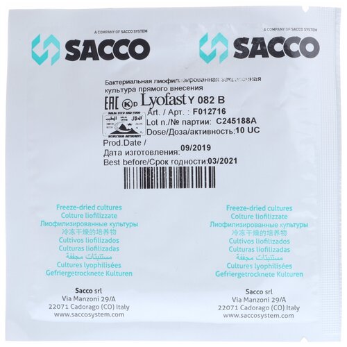 Закваска термофильная Lyofast Y 082 B 10UC (на 250 — 2000л, Sacco)