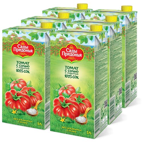 Сок Сады Придонья Томатный, с солью, с мякотью, восстановленный, 2 л х 6 шт