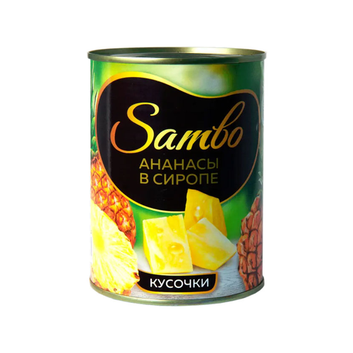 Sambo, ананасы в сиропе, консервированные, кусочки, 565 г