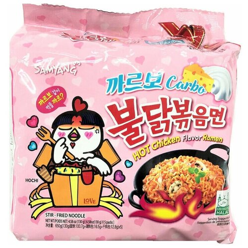 Лапша быстрого приготовления Samyang Buldak Carbo со вкусом острой курицы и сыра в соусе карбонара, 130г.х5шт.