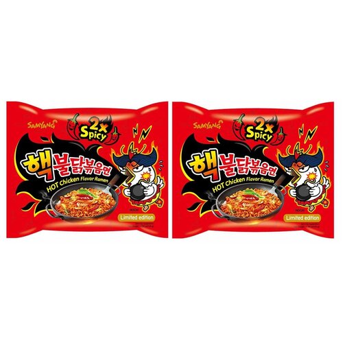 Корейская Острая лапша быстрого приготовления со вкусом курицы 2хSpicy Hot Chicken Flavor Ramen 2x Spicy Buldak 4 шт / Касная