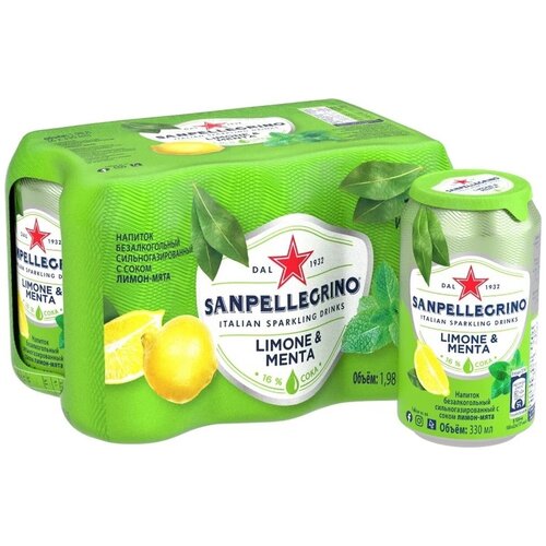 Газированный напиток Sanpellegrino Limone Menta Санпеллегрино Лимон Мята, 6 шт * 330 мл, Италия