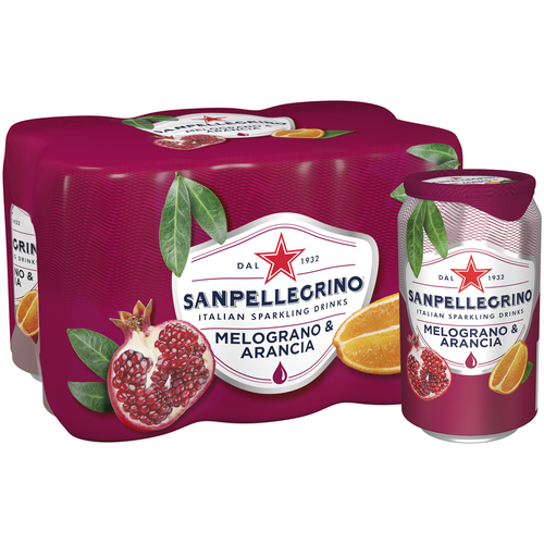 Напиток газированный с соком Sanpellegrino гранат — апельсин, 6 шт по 0,33л ал/б