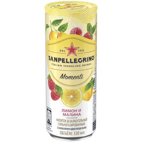 Напиток газированный с соком Sanpellegrino Momenti лимон-малина 0,33л ал/б