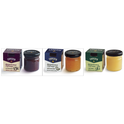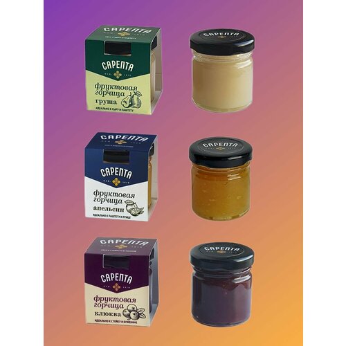 Набор из трех вкусов фруктовой горчицы "Сарепта": апельсин, груша, клюква
