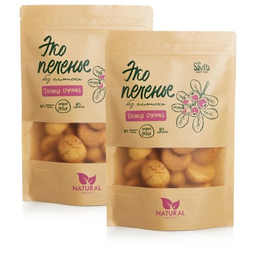 Эко-Печенье без глютена "Таежная брусника", набор 2 шт по 280гр./Savita (Савита)