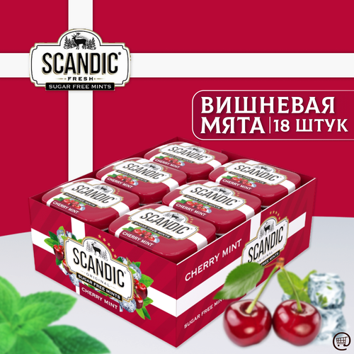 Освежающие конфеты скандик Вишневая Мята 18 шт. по 14г., , Без Сахара, Драже CHERRY MINT