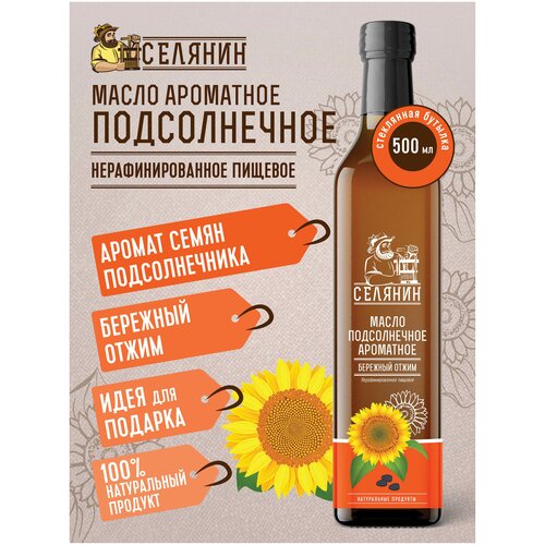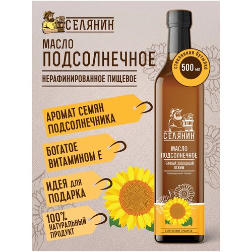 Селянин. Масло подсолнечное ароматное 500мл., нерафинированное, холодного отжима, для салатов, правильного, здорового, спортивного питания.