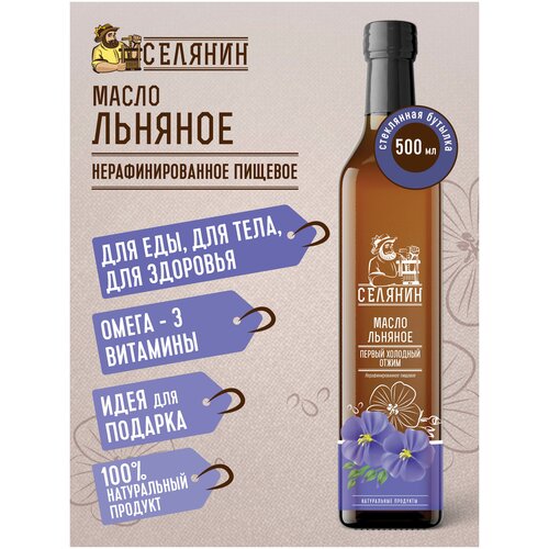 Селянин. Масло льняное 500мл., нерафинированное, первого холодного отжима, для похудения, диетического, здорового, правильного питания, в пост.