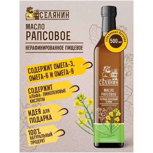 Селянин. Масло рапсовое 500мл., нерафинированное, холодного отжима, здоровое, вегетарианское, спортивное питание в пост.