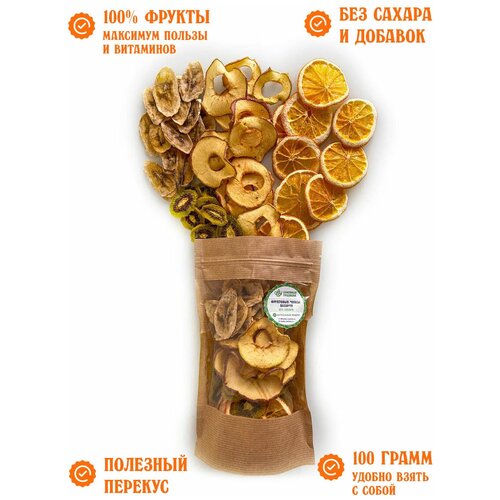Фруктовые чипсы Ассорти, фрипсы, снеки, сушеные, здоровый, полезный перекус детям, без сахара, сушеный апельсин, киви, банан , яблоко, сухофрукты