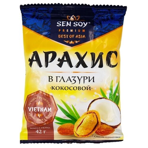 Арахис Sen Soy жареный, в кокосовой глазури, 3 уп х 42 г