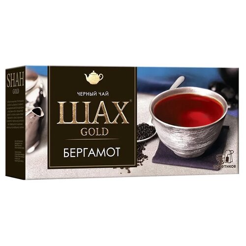 Черный чай гранулированный с бергамотом в пакетиках Шах голд, 25 шт