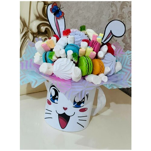 Букет зайчик / Сладкий подарок / Букет из зефира / Сладкий букет / Маршмеллоу / Макарон