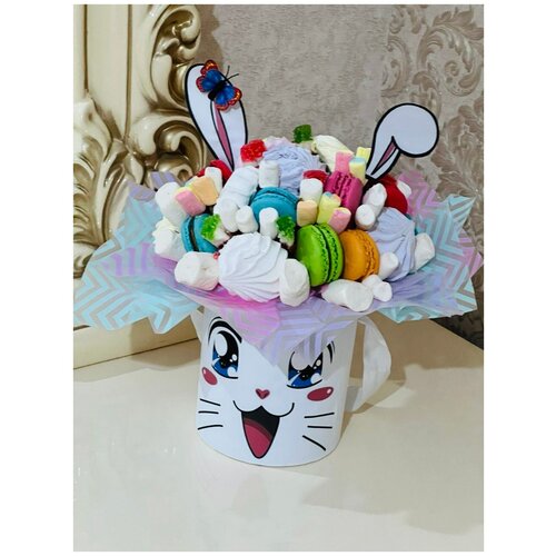 Сладкий букет Кролик / Символ 2023 года / Букет из зефира / Сладкий подарок