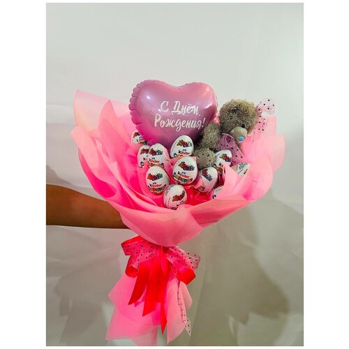 Сладкий букет / Сладкий подарок с мишкой / Яйцо шоколадное 11шт / Подарок девочке