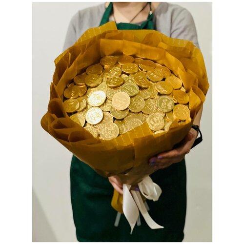 Букет из монет / Сладкий букет / Сладкий подарок / Букет из шоколада / Шоколадные монеты 71шт