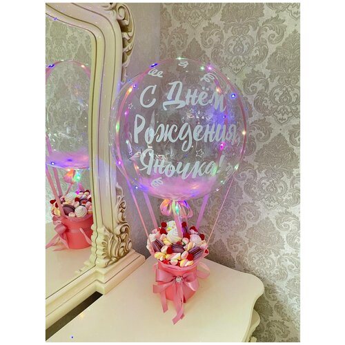 Букет из сладостей / Зефир / Маршмеллоу / Макарунс / Мармелад / Сладкий подарок / Сладкий букет с подсветкой / Букет с шаром