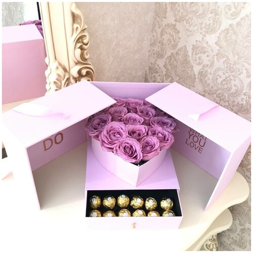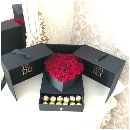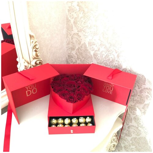Розы / Ларец с цветами / Ферреро роше / Розы 15 шт
