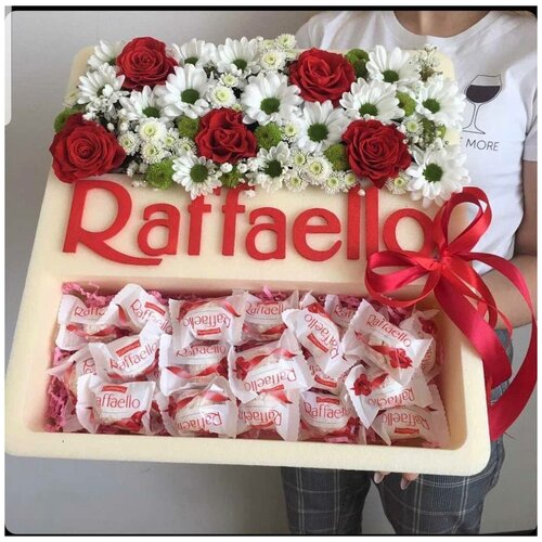 Розы / Ромашки / Раффаэлло / Букет в боксе / Цветы / Конфеты