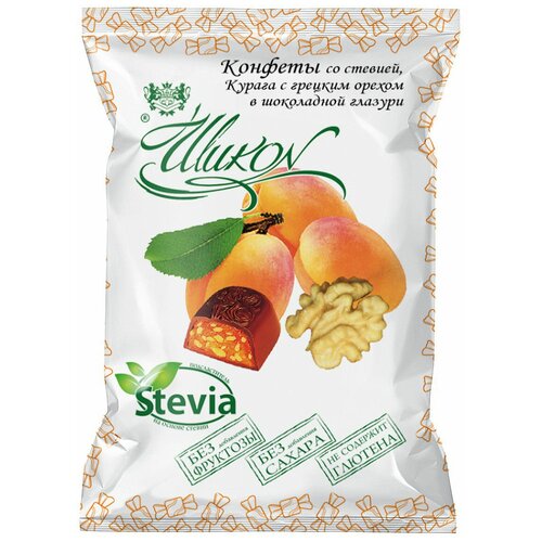 Конфеты Курага с грецким орехом в шоколадной глазури Шикон со стевией, 210 г