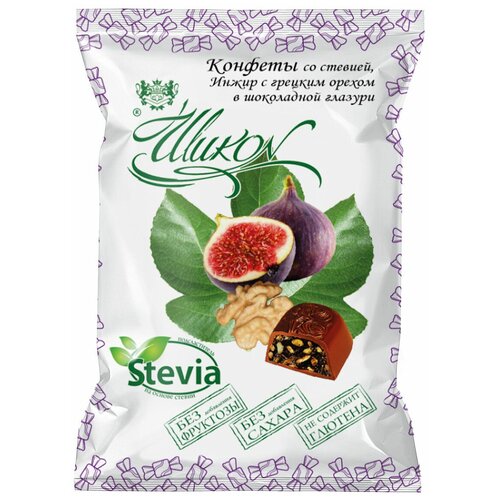 Конфеты Инжир с грецким орехом в шоколадной глазури Шикон со стевией, 210 г