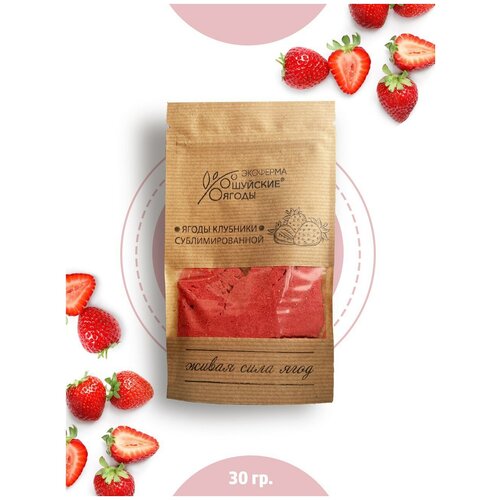 Натуральный порошок из клубники сублимированной без сахара и консервантов, 30 г