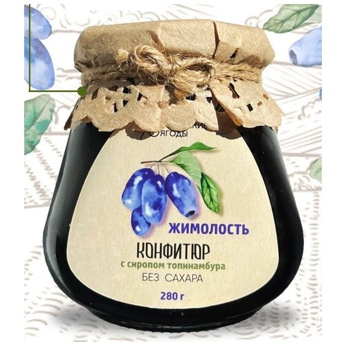 Низкокалорийное варенье с цельными ягодами жимолости без сахара и фруктозы, с сиропом топинамбура, 280 гр