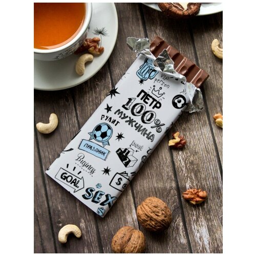 Шоколад молочный "100% мужчина" Петр подарок мужчине папе другу на 23 февраля день рождения