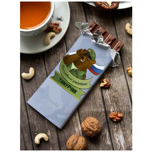 Шоколад молочный "Защитник" Тимурчик подарок мужчине папе другу на 23 февраля день рождения