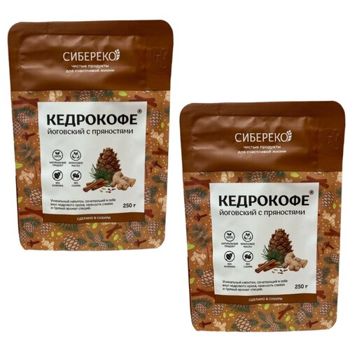 Кедрокофе Йоговский с пряностями (без сахара) 250 гр (Сиберико) (2 шт. в наборе)