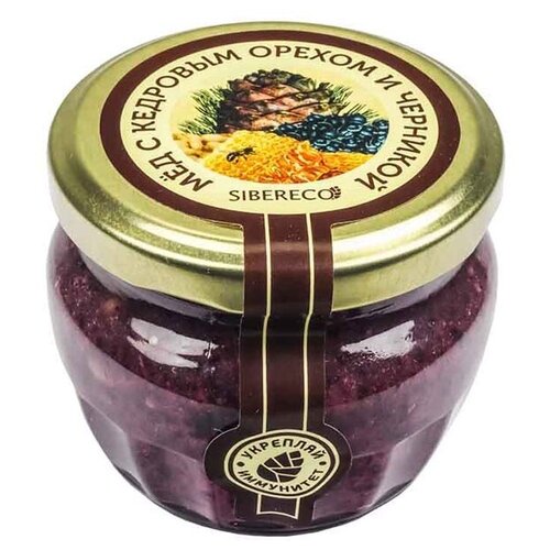 Сибереко Мёд с кедровым орехом и черникой, 220 мл