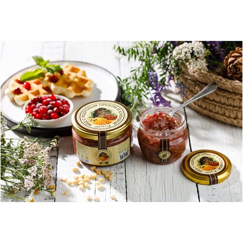 Сибереко Мёд с кедровым орехом и клюквой, 220 мл