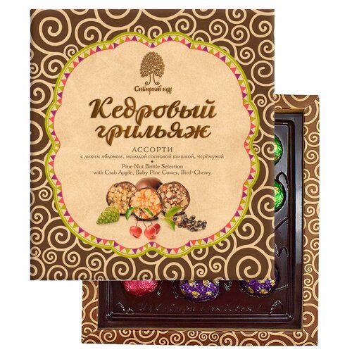 Кедровый грильяж Ассорти дикое яблоко, сосновая шишка, черемуха в шоколадной глазури Сибирский кедр 120 г