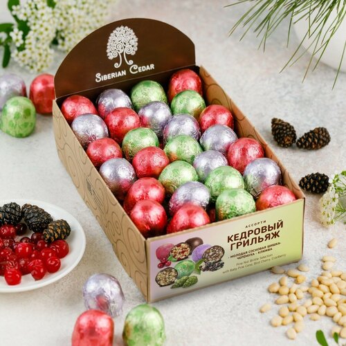 Кедровый грильяж ассорти 540г Сибирский кедр / клюква, сосновая шишка, черемуха / мягкий грильяж / конфеты шоколадные в коробках