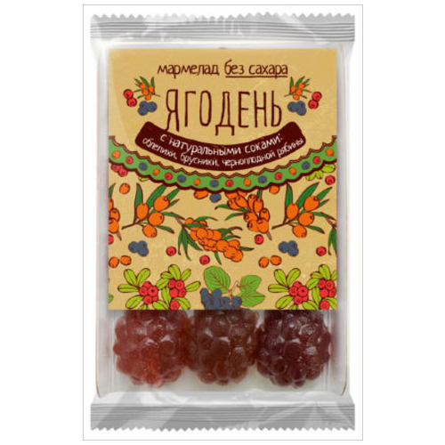 Мармелад Ягодень облепиха, брусника, черноплодная рябина без сахара 165 г