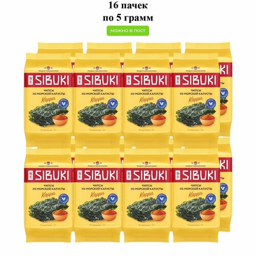 Чипсы из морской капусты Сибуки Карри, 5 г x 16 шт