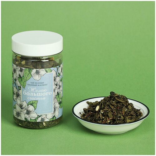 Чай зеленый в банке "Желаю большого Счастья" с жасмином, 50 гр
