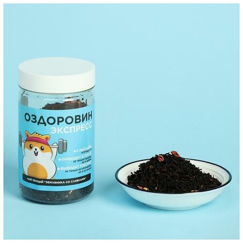 Чай черный в банке "Оздоровин" Земляника со сливками, 50 гр