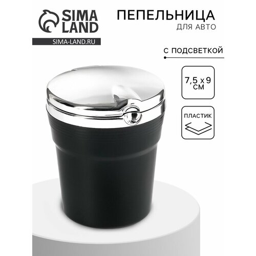 Пепельница для авто, с подсветкой, 7.5 х 9 см, чёрная 7435469