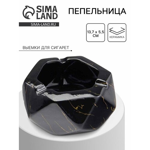 Пепельница для дома "Мрамор", для сигарет и стиков, 13.7 х 5.5 см, керамика, чёрно-золотая 10511878
