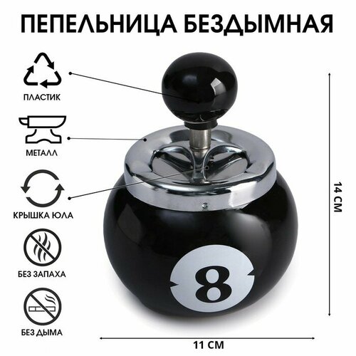 Пепельница для дома бездымная "Бильярдный шар", для сигарет и стиков, 11 х 14 см, чёрная 257802
