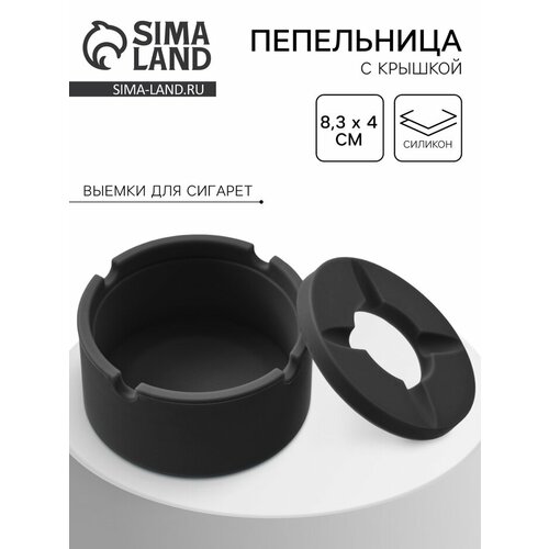 Пепельница силиконовая, с крышкой, круглая, 8.3 х 4 см, чёрная 10502114