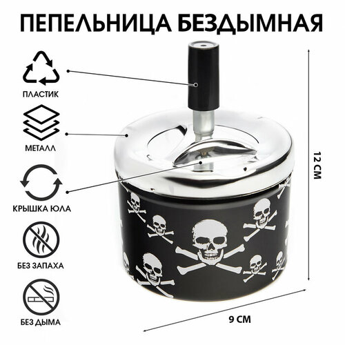 Пепельница для дома бездымная "Череп", для сигарет и стиков, 9 х 12 см 9444159